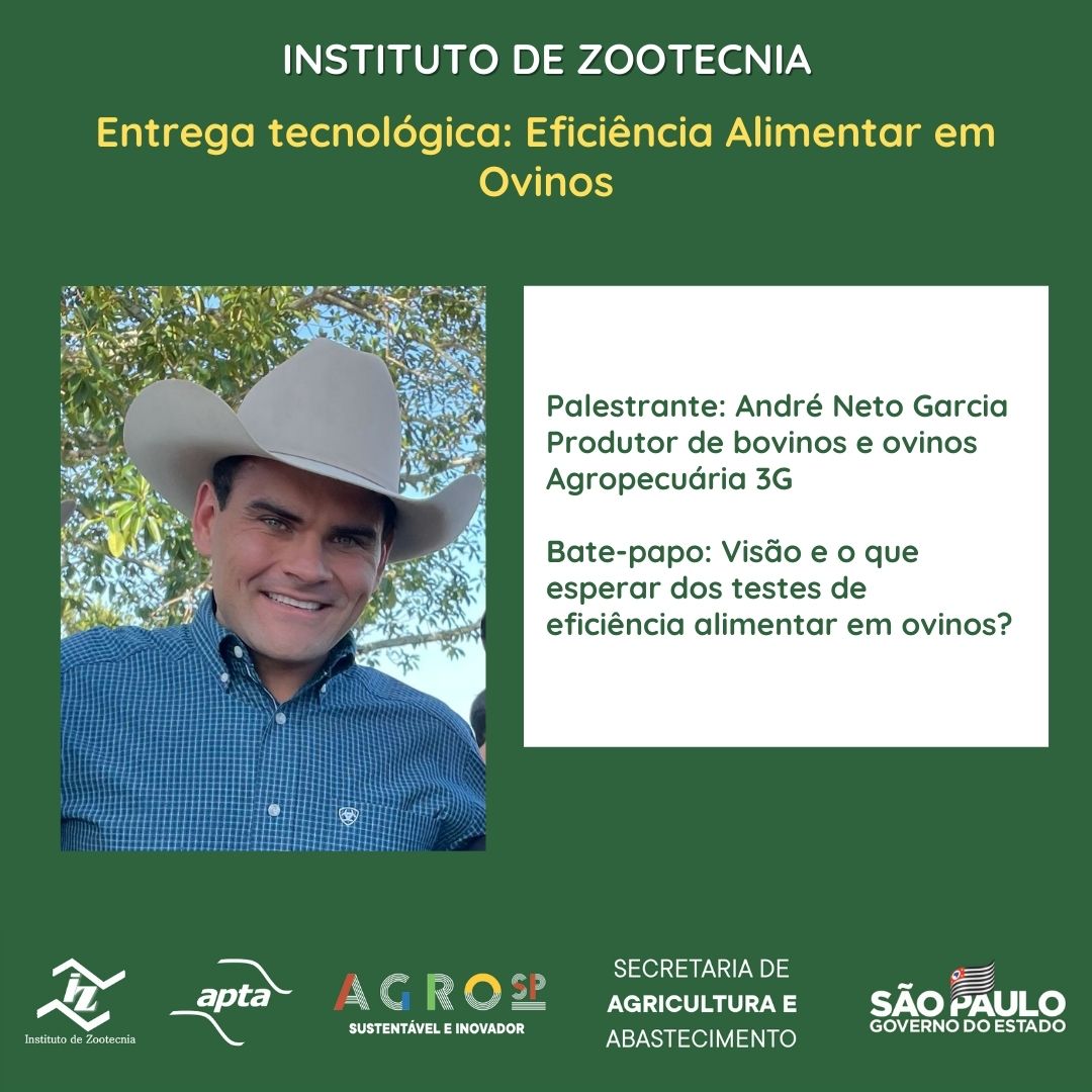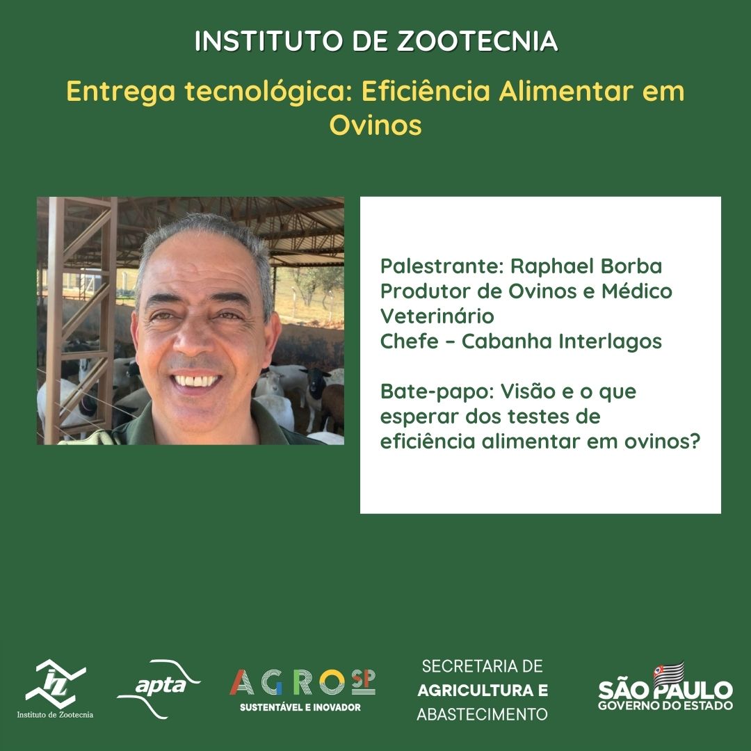 Resumo: O evento discutirá sobre os testes de eficiência alimentar em ovinos, apresentando resultados concretos, no Brasil (IZ-Nova Odessa), Uruguai e México, com ou sem o uso de equipamentos automatizados