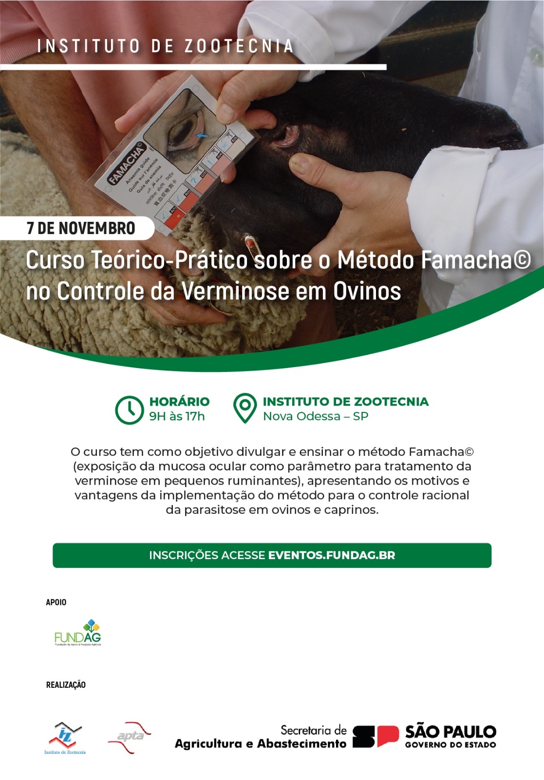 Resumo: O curso pretende mostrar as vantagens e ensinar como fazer o método Famacha© de controle da verminose em pequenos ruminantes