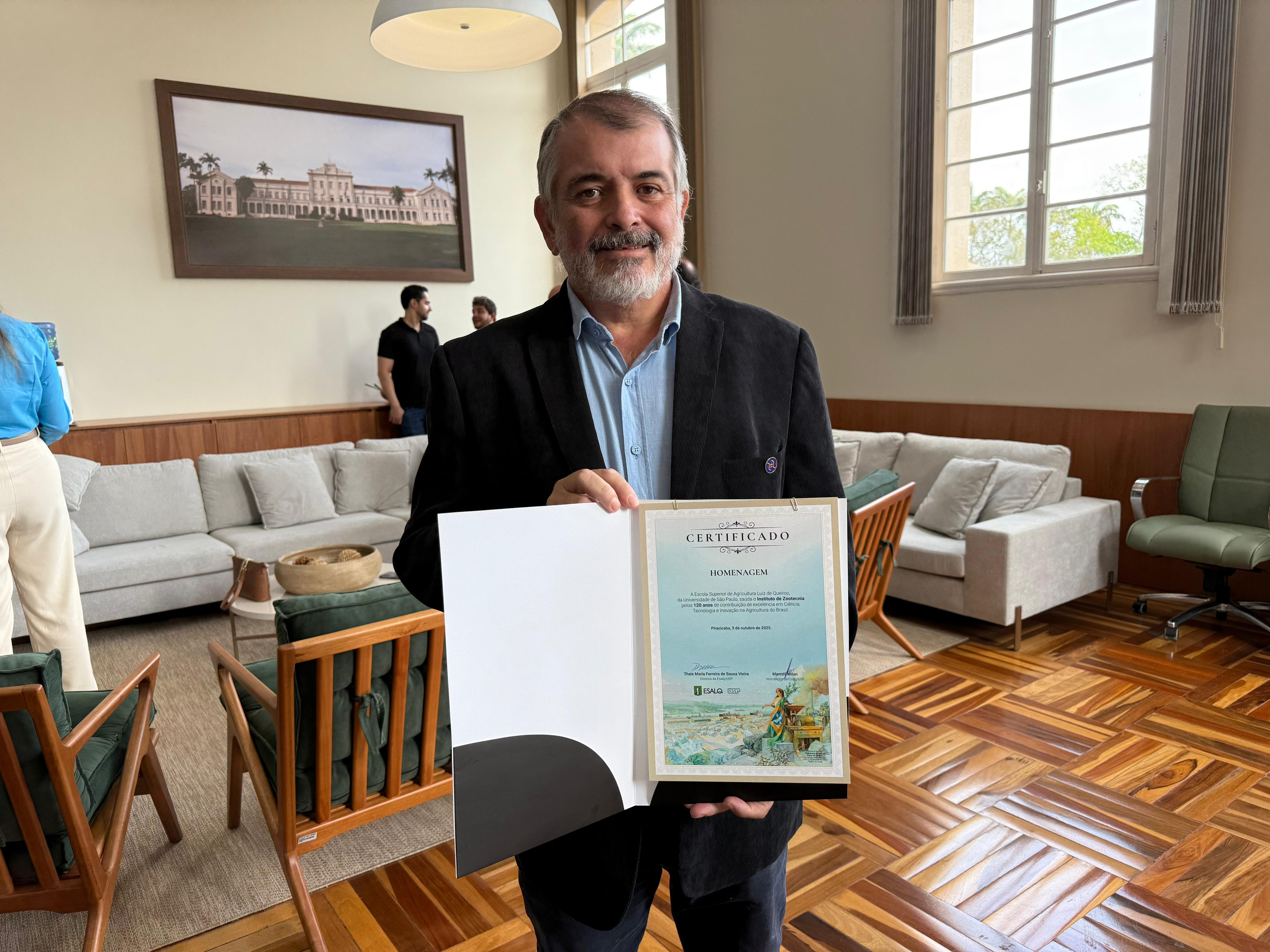 09/10/2025 Instituto de Zootecnia é homenageado durante a 68ª Semana Luiz de Queiroz Como parte das comemorações da 68ª Semana Luiz de Queiroz, como tradicionalmente, ocorreu hoje a transferência simbólica do Gabinete da Secretaria de Agricultura e Abastecimento do Estado de São Paulo e a sessão de reconhecimento e homenagens a iniciativas acadêmicas, entidades parceiras e personalidades. O Instituto de Zootecnia IZ-Apta – SAA que, neste ano, completou 120 anos, foi um dos homenageados. O prêmio foi recebido pelo coordenador do IZ, Enilson Ribeiro. As duas Instituições foram criadas no mesmo período, IZ (1905) e Esalq (1901), e são parceiras no desenvolvimento de tecnologias para o Agronegócio.