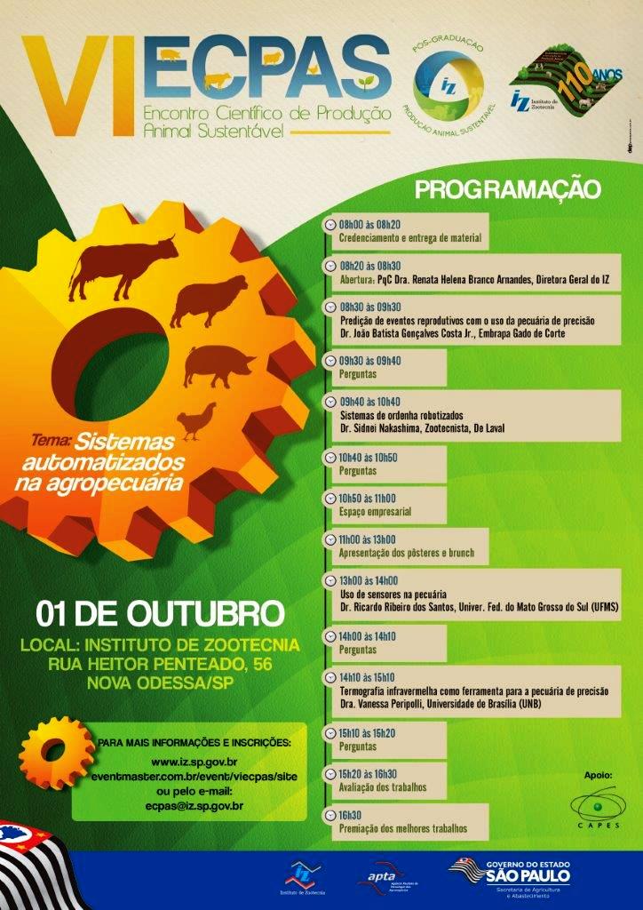 Local: Instituto de Zootecnia/APTA/SAA-SP - Data de submissão de resumos prorrogada até 03/09 !