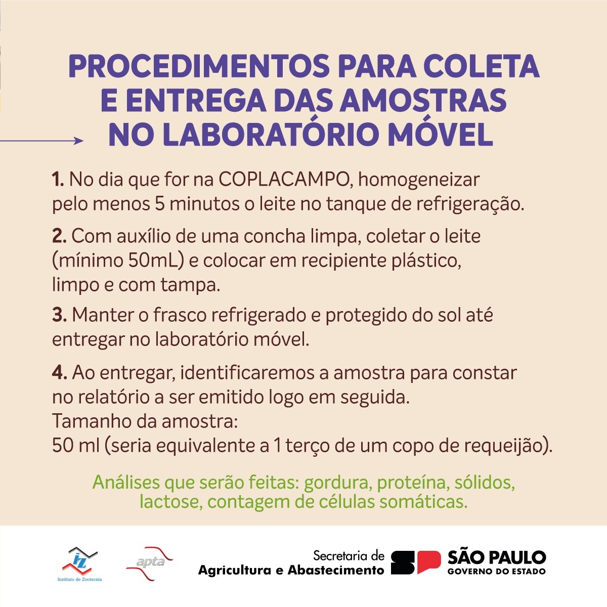 Veja abaixo as instruções para coleta e entrega das amostras de Leite.