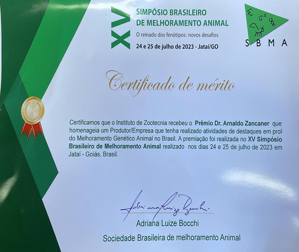 Instituto de Zootecnia é premiado pela Sociedade Brasileira de Melhoramento Animal