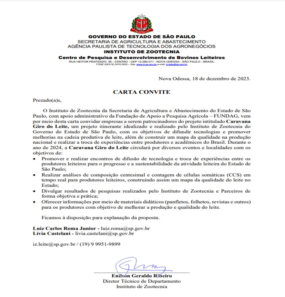 Pesquisa Agrícola (FUNDAG), convida empresas a patrocinarem a Caravana Giro do Leite.